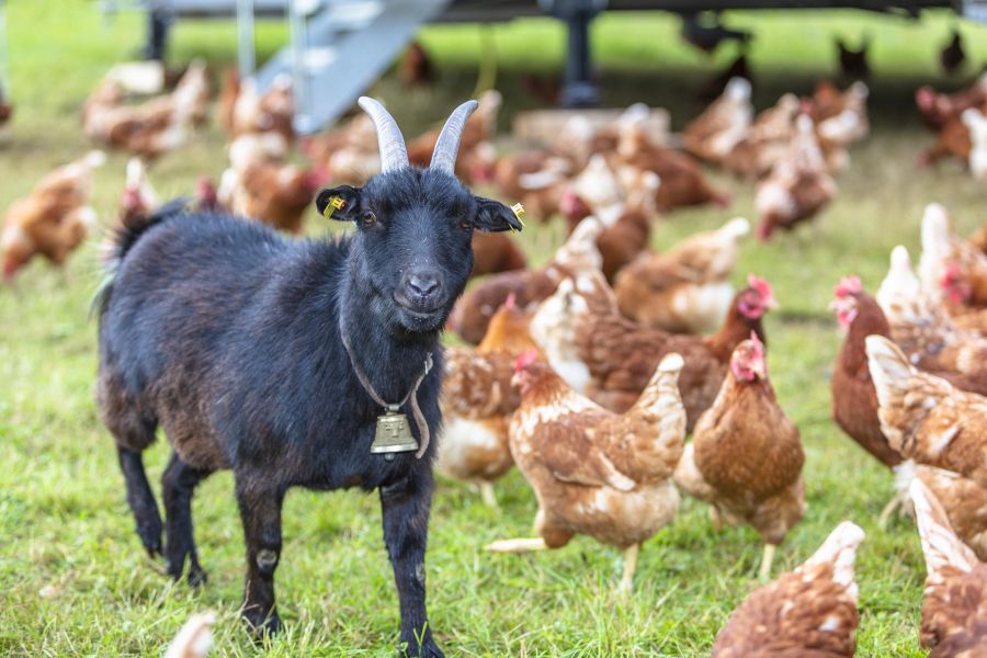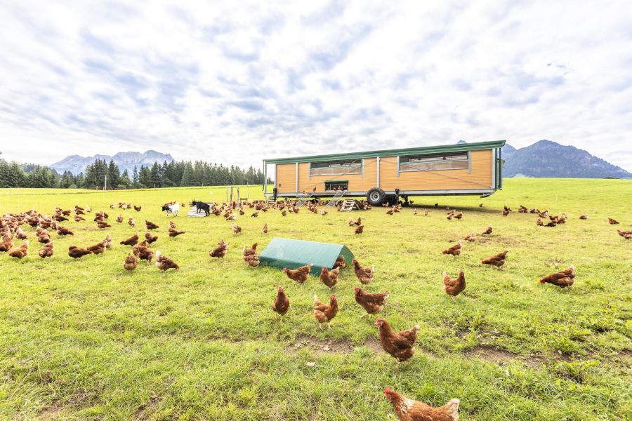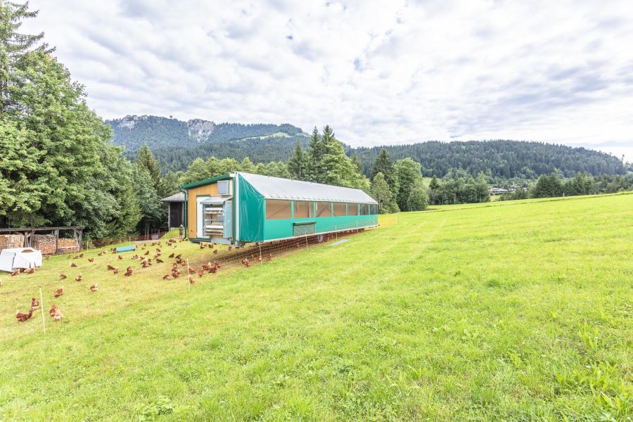 Bei uns steht tierfreundliche Haltung an erster Stelle. Wir betreiben 2 Ställe, einen Fixstall mit einer kleinen Herde und großzügigem Auslauf. Seit dem Frühjahr 2021 sind wir auch stolze Besitzer eines mobilen Hühnerstalles. Diesen können wir immer wieder versetzen, sodass unseren Hühnern ständig frisches Gras zur Verfügung steht.